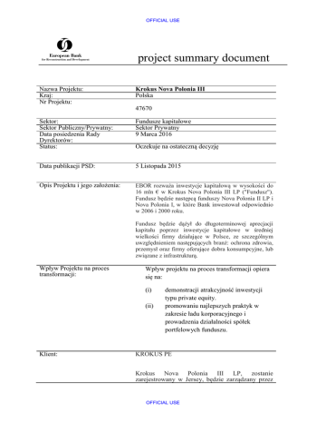 16 mln € w Krokus Nova Polonia III LP ("Fundusz").