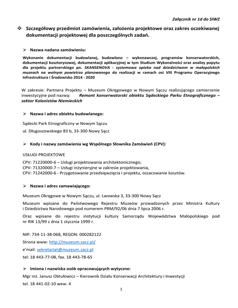 5.Załącznik Nr 1d do SIWZ - Muzeum Okręgowe w Nowym Sączu
