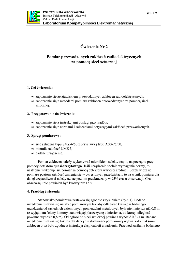 Ćwiczenie Nr 2 Pomiar przewodzonych zakłóceń radioelektrycznych