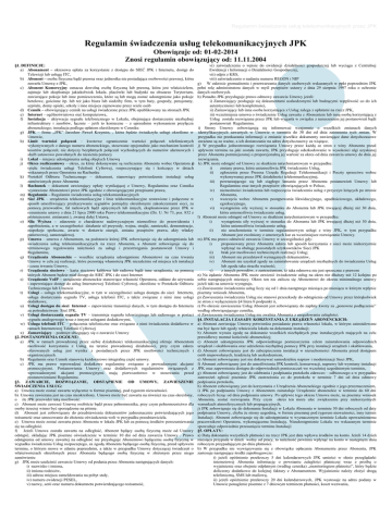 Regulamin świadczenia usług telekomunikacyjnych JPK