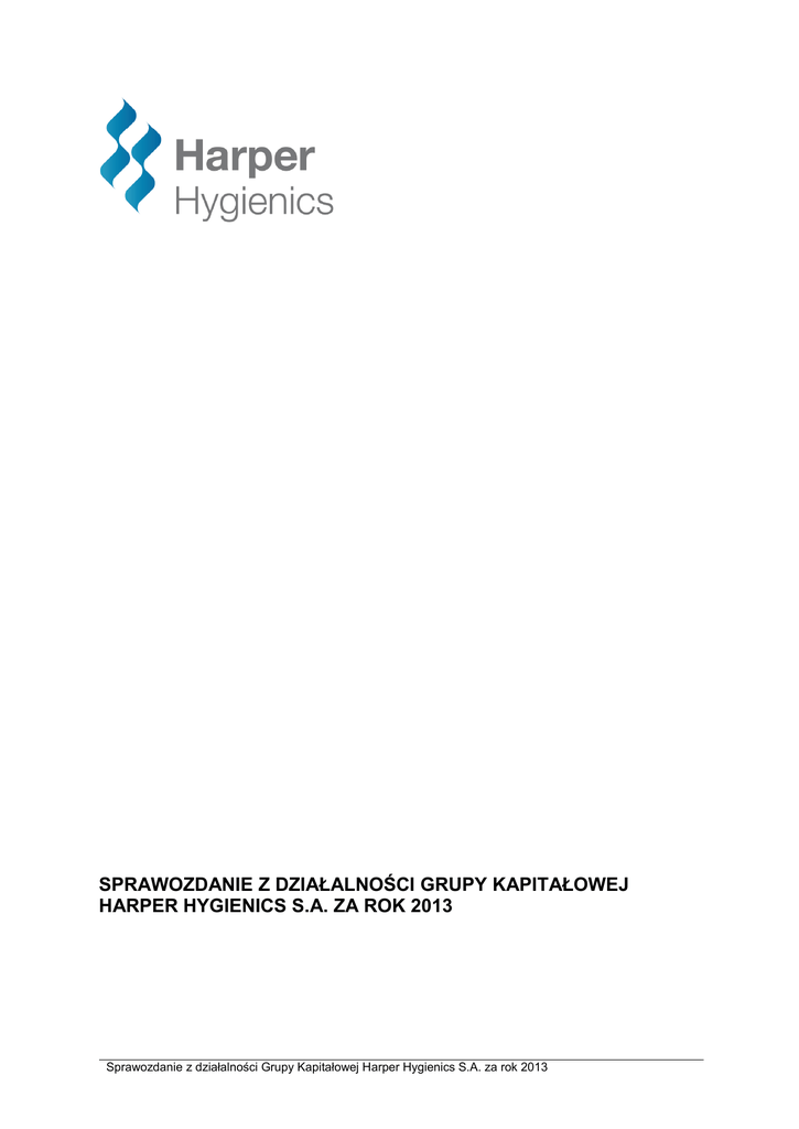 Sprawozdanie z działalności Grupy Kapitałowej Harper Hygienics S.A. za rok 2013