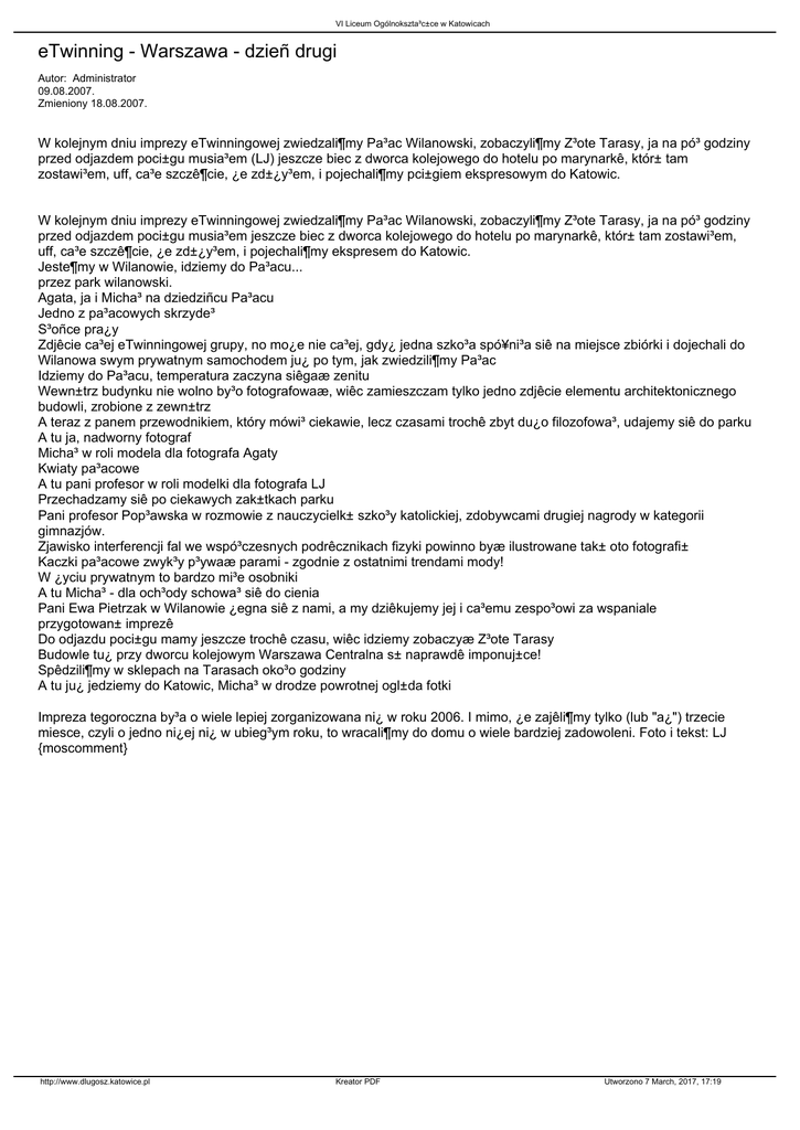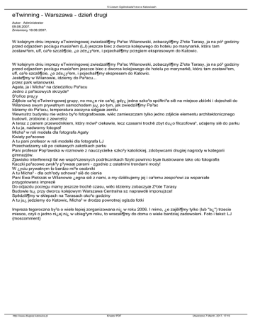 W kolejnym dniu imprezy eTwinningowej zwiedzali¶my Pa³ac Wilanowski, zobaczyli¶my Z³ote Tarasy, ja na pó³ godziny