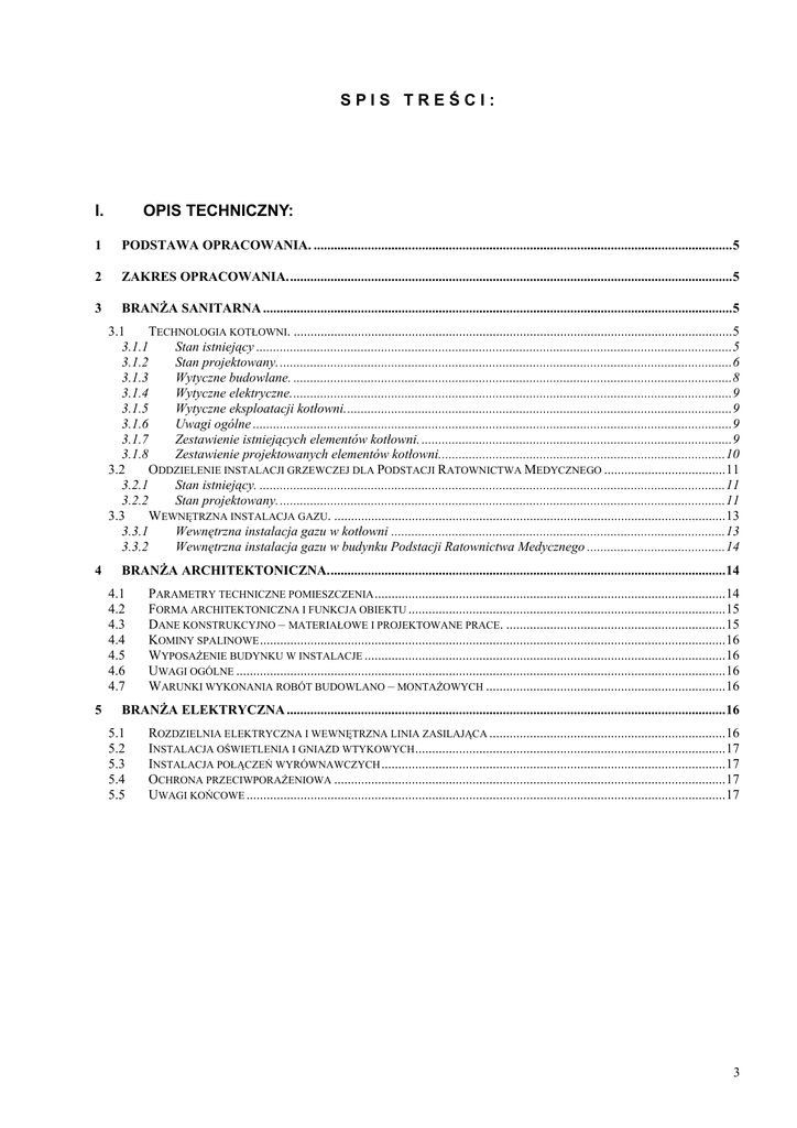 spistre ś ci : i. opis techniczny