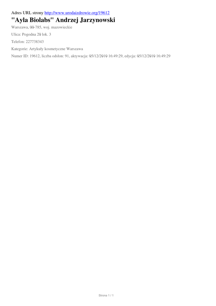 "Ayla Biolabs" Andrzej Jarzynowski, Warszawa, Pogodna 20 lok. 3