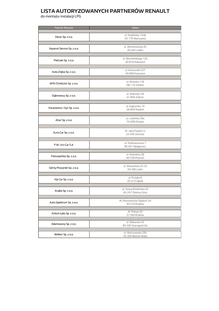 LISTA AUTORYZOWANYCH PARTNERÓW RENAULT