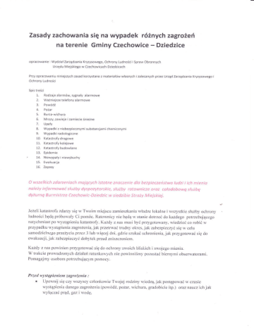 rłystąpienia danego zagrozenia (poNódź pozar' !vichura. gradobicie ilp'] oraz naucz ich jak