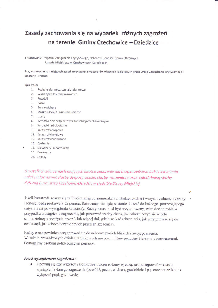 Podc7as katastrof może Wysląpić blak prądu' 8azu czy wody itp- NIożli\ł,e jest też że wa nki