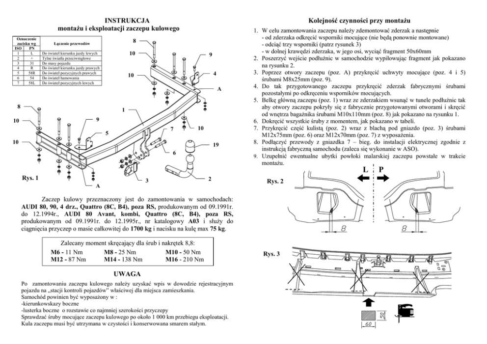 INSTRUKCJA montażu i eksploatacji zaczepu kulowego UWAGA