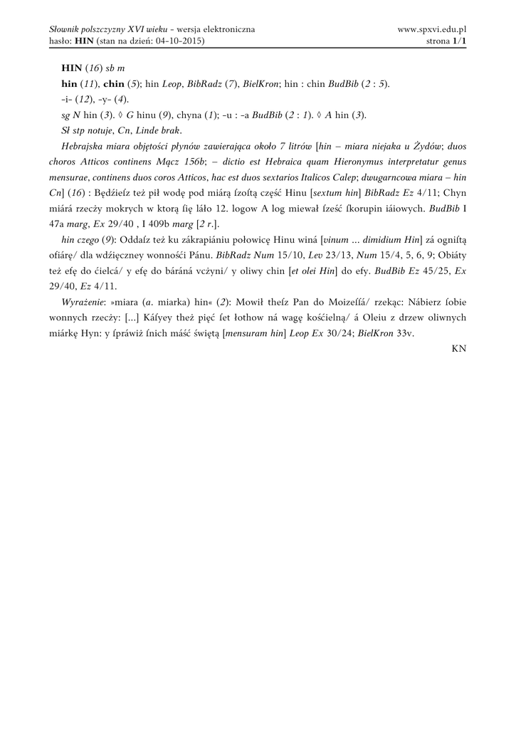 hin : chin BudBib (2 : 5). - Słownik polszczyzny XVI wieku