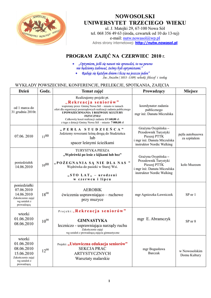 czerwiec - Nowosolski Uniwersytet Trzeciego Wieku NUTW
