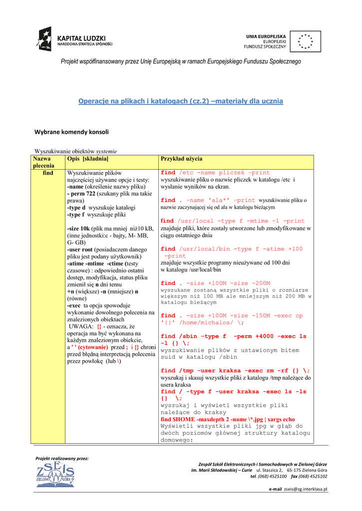Operacje na plikach i katalogach (cz.2) –materiały dla ucznia