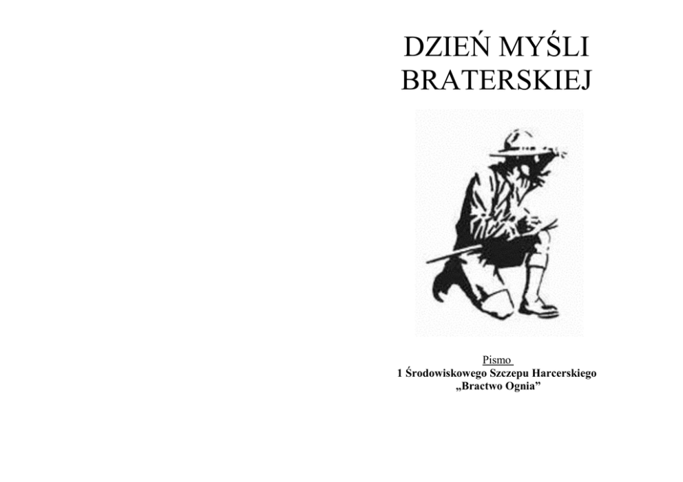 DZIEŃ MYŚLI BRATERSKIEJ Pismo 1 Środowiskowego Szczepu Harcerskiego „Bractwo Ognia” Dzień Myśli Braterskiej „4. Skaut jest przyjacielem wszystkich, a bratem każdego innego skauta.” (Pierwsza redakcja Prawa Skautowego – „Skaut nr 2 – 01.11.1911r.” – Lwów, Wacław Błażejewski – „Z dziejów harcerstwa polskiego” – Warszawa MAW 1985) Dzień Myśli Braterskiej to święto przyjaźni obchodzone w dniu 22 lutego każdego roku przez harcerzy i skautów na całym świecie. 22 lutego to dzień urodzin założyciela skautingu, sir Roberta Baden-Powella (22 lutego 1857) i jego żony Olave Baden-Powell (22 lutego 1889). Dlatego w ten dzień harcerze myślą o sobie, składają sobie życzenia, przesyłają kartki, organizują różne gry terenowe lub spotykają się przy ognisku. Dla wszystkich harcerek i harcerzy 22 lutego jest dniem szczególnym, od 82 lat obchodzony jako Dzień Myśli Braterskiej. Dla entuzjastów skautingu z całego świata jest to okazja, aby wprowadzać Myśli w czyn! I przekazać wzajemnie braterskie myśli. Myśli w czyn! To życzliwe myślenie o drugim człowieku, akceptacja, próba przełamania niechęci czy nieufności. Dla członków Związku Harcerstwa Polskiego i innych organizacji harcerskich to okazja do organizacji uroczystych spotkań, przesyłania sobie Ŝyczeń. Tradycyjnie odbędą się spotkania harcerek i harcerzy róŜnych pokoleń, oraz zbiórki datków na cele charytatywne. Idea ustanowienia tego dnia zrodziła się na 4 Międzynarodowej Konferencji Skautek i Przewodniczek w 1926 roku w Stanach Zjednoczonych. Wybór daty padł na dzień 22 lutego – rocznicę urodzin załoŜycieli skautingu gen. Roberta Baden-Powella, Naczelnego Skauta Świata i jego Ŝony Olave Baden-Powell, Naczelnej Skautki Świata. Początkowo było to święto dziewcząt, jednak z czasem równieŜ skauci dołączyli do jego obchodów. Dzień Myśli Braterskiej uświadamia skautom na całym świecie, jak jest ich wielu i Ŝe wszyscy są dla siebie braćmi, niezaleŜnie od koloru skóry, narodowości, czy wieku. powstania tego ruchu, rozwijał się on bardzo żywiołowo, angażując kolejnych młodych ludzi z krajów na całym świecie. Drodzy Skauci! ...Pomyślcie sobie, że jest to moje ostatnie posłanie do was i weźcie je sobie do serca. Moje życie było szczęśliwe i chciałbym jedynie życzyć wam, aby każdy z was żył równie szczęśliwie. Werze, że Bóg zesłał nas na ten świat, abyśmy byli na nim szczęśliwi i cieszyli się życiem. Szczęście nie wynika z bogactwa czy sukcesu w pracy zawodowej, a tym bardziej z pobłażania samemu sobie. Dążenie do szczęści polega na staraniach o to, by być pożytecznym i móc radować się życiem, gdy już będziecie mężczyznami. Starajcie się widzieć dobrą stronę każdej rzeczy. Prawdziwe szczęście znajdziecie jednak w uszczęśliwianiu innych. Spróbujcie pozostawić świat troszkę lepszym, niż go zastaliście. (..,) Harcerz w każdym widzi bliźniego, a za brata uważa każdego innego harcerza.” (Prawo Harcerskie ZHP) „4. HARCERZ W KAŻDYM WIDZI BLIŹNIEGO, każdemu służy pracą, pomocą, ujmuje się za każdym pokrzywdzonym, obca mu jest znieczulica i oziębłość w stosunkach między ludźmi. Przezwycięża urazy i waśnie między ludźmi i między narodami, swą postawą daje wyraz uznania naturalnych praw człowieka. Sprzeciwia się przejawom nienawiści, nie poniża nikogo. Harcerz ZA BRATA UWAŻA KAŻDEGO INNEGO HARCERZA, każdego skauta na całym świecie, każdego wiernego tym samym ideałom. Takie widzenie świata i ludzi prowadzi do poszanowania przekonań, do demokracji i tolerancji.” (hm Stefan Mirowski – styczeń 1996) Czy wiesz ile to jest jeden miliard? Tyle sekund upływa w ciągu ponad 30 lat. Tyle też osób do tej pory było skautami. Od zarania skautingu, przez prawie 100 lat, na całym świecie, już blisko miliard młodych ludzi przeżywało skautową przygodę. Od samego Wasz przyjaciel Baden-Powell of Gilwell ADESŁAE ŻYCZEIA „W Dniu Myśli Braterskiej – 22 lutego, w dniu urodzin $aczelnego Skauta Gen. Roberta Baden –Powella, pozdrawiam wszystkich, życząc radości z pracy dla Szczepu i $aszego Związku. „SŁUŻYMY UCZCIWEJ SPRAWIE, A JAKO KTO MOŻE, KU POWSZECHNEMU DOBRU NIECHAJ DOPOMOŻE (Jan Kochanowski) I NIE WIEM DZIŚ, KTO WRÓG, KTO BRAT, BO DAWNE MIARY DZISIAJ NA NIC, LECZ MIŁOŚĆ STWORZY INNY ŚWIAT, BEZ WALK, BEZ KRAT, BEZ GRANIC (Olga Małkowska) Przyjaciele z Buska-Zdrój W Dniu Myśli Braterskiej łączymy się myślami z całą rodziną skautową oraz z przyjaciółmi wspierającymi nas w pełnieniu harcerskiej służby, życząc wszelkiej pomyślności.” Harcerze ze Szczepu Harcerskiego nr10 w Rudniku nad Sanem „Wszystkim naszym druhnom i druhom z Waszego Szczepu życzymy wielu przygód i radości, wiele ciepła i BRATERSTWA…by zawsze sprzyjało wam szczęście, a Wasz dobry duch dawał szczęście innym oraz wytrwałości w kroczeniu harcerska ścieżką w osiąganiu obranych ideałów. Z harcerskim pozdrowieniem CZUWAJ ! 15 Ropczycka Drużyna harcerska im. P.E. Strzeleckiego „ODKRYWCY” "ie chodzi o to, byśmy osiągnęli nasze najwyższe ideały, lecz o to, aby były one naprawdę wysokie" gen. Robert Baden-Powell Z okazji Dnia Myśli Braterskiej składam serdeczne życzenia wszystkim zuchom, harcerzom i instruktorom, wytrwałości w dążeniu do celu, uśmiechu na każdy kolejny dzień, siły, odwagi, wiary i nadziei w lepsze jutro, wielu powodów do dumy, wielu sukcesów, jak najmniej niepowodzeń, spełniania marzeń i wspaniałych wspomnień oraz prawdziwej harcerskiej przygody. dh Katarzyna Wolanin Z okazji Dnia Myśli Braterskiej wszystkim zuchom, skautom, harcerzom, przyjaciołom i dobroczyńcom naszych harcerskich przygód;składamy najserdeczniejsze życzenia wytrwałości w pracy-harcerskiej, w życiu osobistym, w relacjach z ludźmi, jak najwięcejmiłości i zrozumienia. $iech słońce świeci 