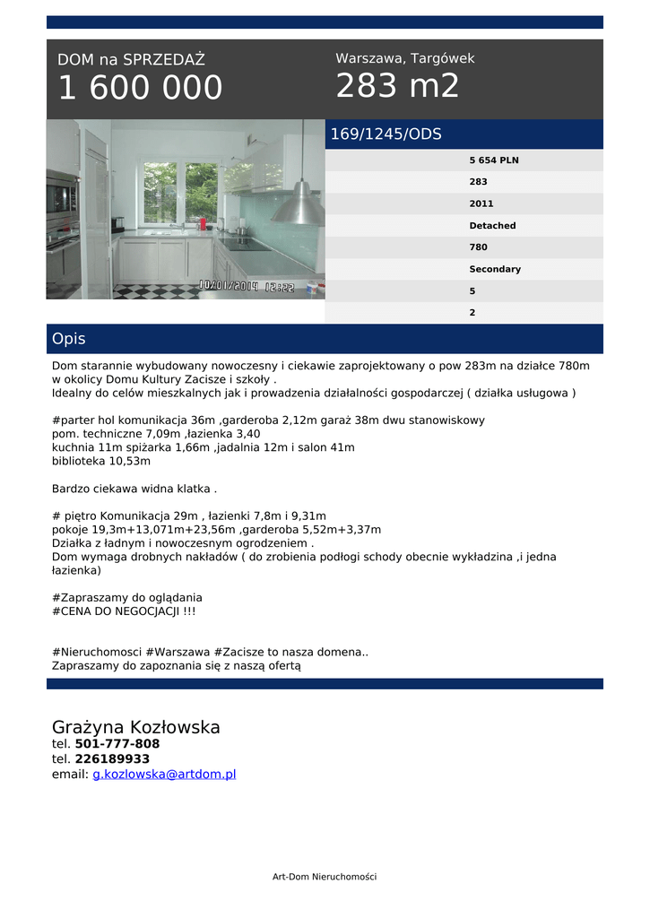 1 600 000 283 m2 - Biuro nieruchomości ART