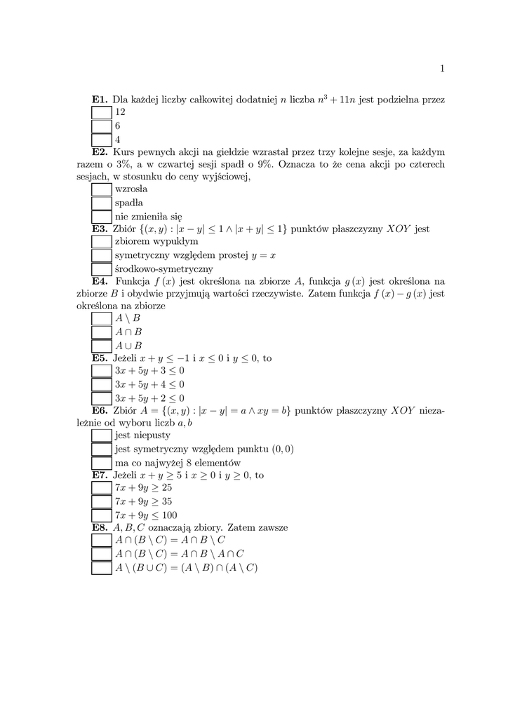 E8. A, B, C oznaczaja˛ zbiory. Zatem zawsze