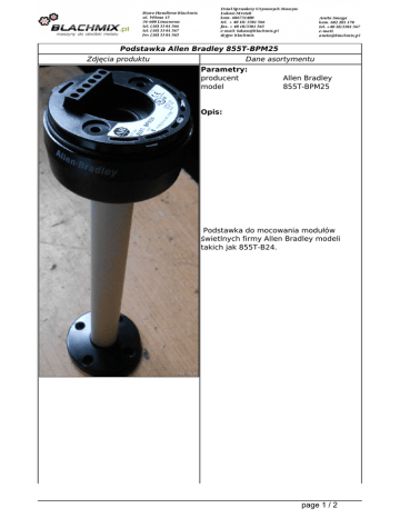 Podstawka Allen Bradley 855T-BPM25 Zdjęcia produktu Dane asortymentu Parametry: producent model Allen Bradley 855T-BPM25 Opis: Podstawka do mocowania modułów świetlnych firmy Allen Bradley modeli takich jak 855T-B24. page 1 / 2 page 2 / 2 Powered by TCPDF (www.tcpdf.org)