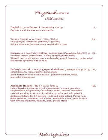 Przystawki zimne - Restauracja SOWA