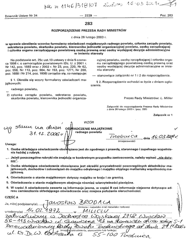 ż d n i a 2 6 | u t e g o2 0 0 3r ' ( p o z . 2 8 3 )