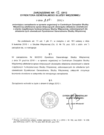zarządzenie nr 4z /2012 dyrektora generalnego służby więziennej