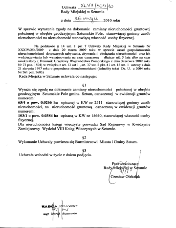 Wyraia siE zgodE na dokonanie zamiany nieruchomodci polo2onej w obrqbie