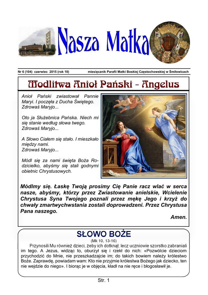Nr 6 (104) czerwiec 2015 (rok 10) miesięcznik Parafii Matki Boskiej Częstochowskiej w Śmiłowicach Anioł Pański zwiastował Pannie Maryi. I poczęła z Ducha Świętego. Zdrowaś Maryjo... Oto ja SłuŜebnica Pańska. Niech mi się stanie według słowa twego. Zdrowaś Maryjo... A Słowo Ciałem się stało. I mieszkało między nami. Zdrowaś Maryjo... Módl się za nami święta BoŜa Rodzicielko, abyśmy się stali godnymi obietnic Chrystusowych. Módlmy się. Łaskę Twoją prosimy Cię Panie racz wlać w serca nasze, abyśmy, którzy przez Zwiastowanie anielskie, Wcielenie Chrystusa Syna Twojego poznali przez mękę Jego i krzyŜ do chwały zmartwychwstania zostali doprowadzeni. Przez Chrystusa Pana naszego. Amen. SŁOWO BOśE (Mk 10, 13-16) Przynosili Mu równieŜ dzieci, Ŝeby ich dotknął; lecz uczniowie szorstko zabraniali im tego. A Jezus, widząc to, oburzył się i rzekł do nich: «Pozwólcie dzieciom przychodzić do Mnie, nie przeszkadzajcie im; do takich bowiem naleŜy królestwo BoŜe. Zaprawdę, powiadam wam: Kto nie przyjmie królestwa BoŜego jak dziecko, ten nie wejdzie do niego». I biorąc je w objęcia, kładł na nie ręce i błogosławił je. Str. 1 Było samo południe. Słońce świeciło, dając ciepło i radość. Lekki wiatr poruszał liście drzew owocowych w ogrodzie. Z daleka dochodził modulowany wiatrem głos dzwonów na Anioł Pański. Przypomniały mi się słowa piosenki: "Gdy na Anioł Pański bije dzwon, Maryjo, dusza moja śpiewa Tobie pieśń; niechaj dźwięczne nutki przed tron Twój płyną, naszej pracy i radości śpiew". Na usta cisnęły się słowa modlitwy Anioł Pański: "Słowo stało się Ciałem"- Bóg stał się dla nas człowiekiem, aby nas zbawić. Czy są jakieś słowa mogące wyrazić wdzięczność? Te najpiękniejsze znajdujemy w modlitwie Anioł Pański. Kiedyś ludzie trzy razy - rano, w południe i wieczorem - przerywali swoje zajęcia, by podziękować za wszelkie dobro, by uświęcić swoją pracę, by - jak kapłani odmówić swój brewiarz. Przypominały o tym, wygrywając swoją melodię, dzwony kościelne. Mimo zmienionych warunków Ŝycia, dla większości ludzi pozostały niezmienione charakterystyczne momenty dnia (rano, południe, wieczór) wyznaczające ich czas pracy i zapraszające do krótkiego zatrzymania się na modlitwie. I tylko czasem brakuje tych kościelnych dzwonów, które zwoływały i zapraszały do modlitwy. Mogą jednak dzwonić dzwony serca, przywołujące do wdzięczności Bogu za Wcielenie i Zbawienie. Tę wdzięczność wyraŜamy wraz z Maryją, która jest wzorem uwierzenia i zawierzenia Bogu, która jest zawsze bliska całej ludzkości, która pełni rolę szczególną w dziejach zbawienia. W modlitwie Anioł Pański ludzie umacniali swą duchową więź z historycznym początkiem radosnej nowiny o pochyleniu się Boga nad człowiekiem w absolutnej miłości. TakŜe i dzisiaj zgłębiają w niej przełomowe znaczenie tej tajemnicy, Ŝe Bóg dla nas i dla naszego zbawienia stał się Człowiekiem. Modlitwa Anioł Pański jest praktykowana w obecnej formie od trzech stuleci. Była zalecana wielokrotnie przez autorytety kościelne: przede wszystkim przez synody regionalne. Początki jej odmawiania są nieznane. W pierwszej połowie XIV w. papieŜ Jan XXII zarządził, aby w czasie przyjętego juŜ w wielu miejscach wieczornego bicia w dzwony, pozdrawiać NMP trzykrotnym Ave Maria. Obok dzwonienia wieczornego pojawiło się wkrótce dzwonienie na modlitwę poranną. O biciu dzwonów w południe mówią dopiero świadectwa z końca XIV wieku. Motywacja, rodzaj i forma modlitw odmawianych w róŜnych porach dnia ulegały w ciągu wieków modyfikacjom. Formę dzisiejszą modlitwy Anioł Pański spotykamy po raz pierwszy w oficjalnym, maryjnym modlitewniku łacińskim, wydanym za pontyfikatu Piusa V w drugiej połowie XVI stulecia. W XVII w. synod w Pradze podkreślił, Ŝe bicie dzwonów rano jest wspomnieniem Zmartwychwstania Chrystusa, w południe - UkrzyŜowania, wieczorem Wcielenia. Paweł VI w adhortacji "Marialis cultus" mówi o liturgicznym rytmie modlitwy Anioł Pański. Impulsem do odmawiania tej modlitwy stał się apel Jana Pawła II, wypowiedziany w dniu koronacji papieskiej, o łączeniu się z nim podczas południowego odmawiania tej modlitwy. Prosił o to szczególnie nas, rodaków, ufając, Ŝe go nie zawiedziemy. Przede wszystkim jednak okazujmy w niej Bogu wdzięczność za dar Wcielenia i Zbawienia. Nie zrozumiemy w pełni miłości, dzięki której Bóg stał się Człowiekiem. Zechciejmy jednak często za tę miłość dziękować, właśnie w tej modlitwie. Skłania nas ona do przypomnienia sobie Tajemnicy Paschalnej, albowiem poznawszy Wcielenie Syna BoŜego, prosimy, byśmy zostali doprowadzeni przez Jego mękę i krzyŜ do chwały zmartwychwstania. Zechciejmy zatrzymać się trzykrotnie pośród codziennej krzątaniny i zajęć, by ponowić swoje odniesienie Ŝycia ku temu centrum mocy, skąd przychodzi zbawienie świata i wszystkich ludzi. Jest to modlitwa szczególnie odpowiednia dla człowieka współczesnego poddanego wielorakim presjom wewnętrznym i zewnętrznym, często wewnętrznie rozdartego, nie mogącego skupić się przez dłuŜszą chwilę. Modlitwa Anioł Pański nie straciła swej aktualności. Nie potrzeba tej modlitwie Ŝadnych reform, trzeba tylko oŜywienia jej praktyki pośród wierzących. Ks. Proboszcz Antoni Cebula SDS Str. 2 Ferdynand Bulonne urodził się w Lizbonie w 1195 r. Pomiędzy 15. a 20. rokiem Ŝycia wstąpił do Kanoników Regularnych św. Augustyna, którzy mieli swój klasztor na przedmieściu Lizbony. Spędził tam dwa lata, po czym przeniósł się do klasztoru w Coimbrze, które to miasto, obok Lizbony, było drugim, najwaŜniejszym ośrodkiem Ŝycia religijnego i kulturalnego kraju. Tam zdobył gruntowne wykształcenie teologiczne i w roku 1219 otrzymał święcenia kapłańskie. W rok potem Ferdynand był świadkiem pogrzebu 