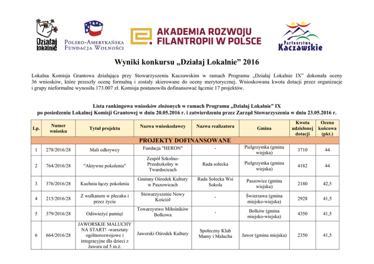 ranking wnioskow DL2016 - Partnerstwo Kaczawskie