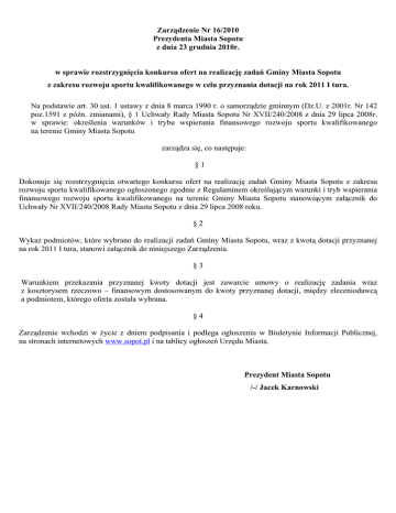 Zarządzenie Nr 16/2010 Prezydenta Miasta Sopotu z dnia 23