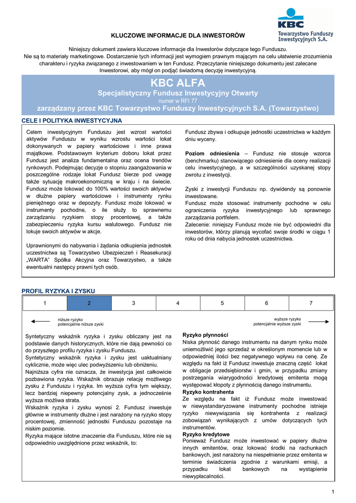 Kluczowe Informacje dla Inwestorów KBC ALFA SFIO