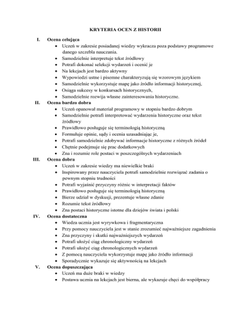KRYTERIA OCEN Z HISTORII I. Ocena celująca