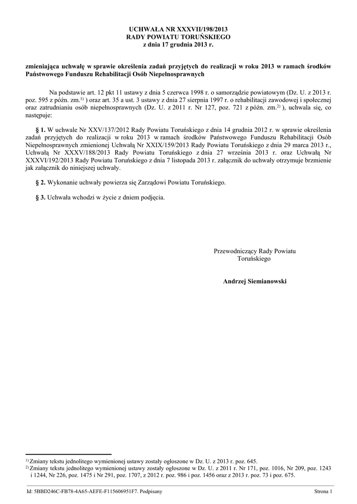 Uchwała Nr XXXVII/198/2013