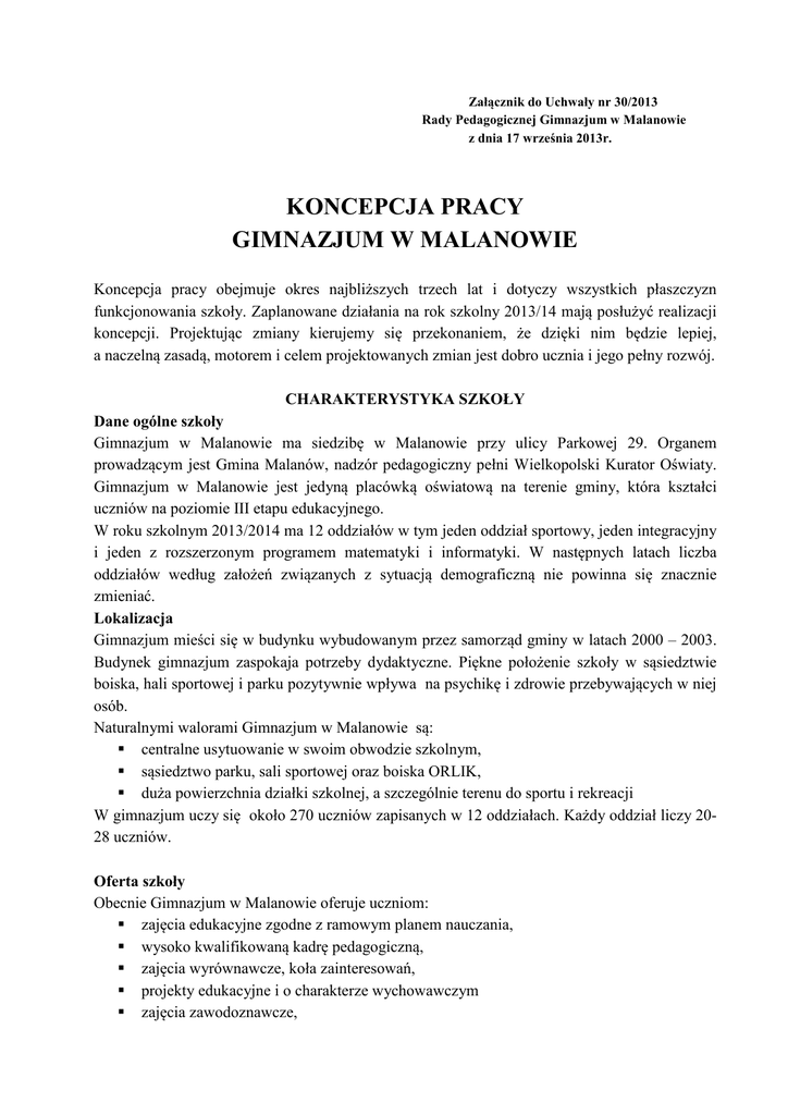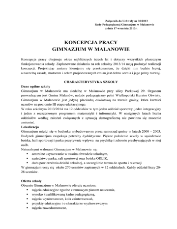 koncepcja pracy szkoły - Gimnazjum w Malanowie