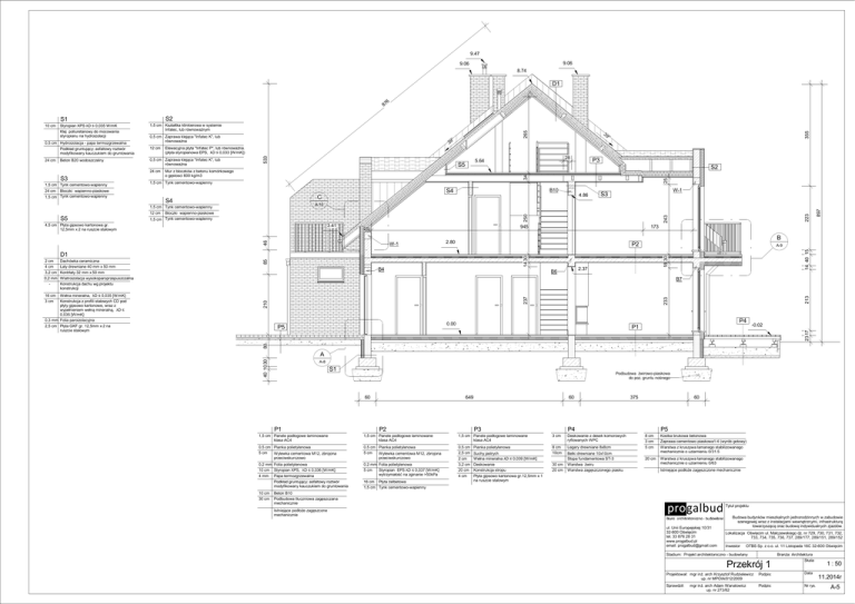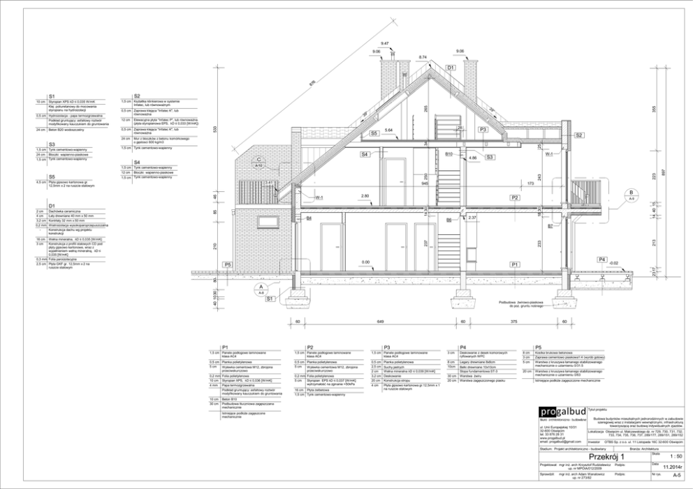9.47 9.06 9.06 8.74 D1 6 87 265 S5 B10 S4 4.86 1 C S4 3.41 945 W-1 897 B 1 2.80 P2 85 14 30 D1 B4 A-9 2.37 B6 P4 0.00 -0.02 23 17 P1 80 P5 213 210 237 B7 1 A 40 10 30 Wełna mineralna, λD ≤ 0,035 [W/mK] Konstrukcja z profili stalowych CD pod płyty gipsowo kartonowe, wraz z wypełnieniem wełną mineralną, λD ≤ 0,035 [W/mK] 0,3 mm Folia paroizolacyjna 2,5 cm Płyta GKF gr. 12,5mm x 2 na ruszcie stalowym 173 14 40 15 46 4,5 cm Płyta gipsowo kartonowa gr. 12,5mm x 2 na ruszcie stalowym 223 Bloczki wapienno-piaskowe 1,5 cm Tynk cementowo-wapienny 250 12 cm 16 cm 3 cm W-1 S3 A-10 1,5 cm Tynk cementowo-wapienny Dachówka ceramiczna Łaty drewniane 40 mm x 50 mm Kontrłaty 32 mm x 50 mm Wiatroizolacja wysokoparoprzepuszczalna Konstrukcja dachu wg projektu konstrukcji 25 1,5 cm Tynk cementowo-wapienny Bloczki wapienno-piaskowe 1,5 cm Tynk cementowo-wapienny 2 cm 4 cm 3,2 cm 0,2 mm - P3 S2 Mur z bloczków z betonu komórkowego o gęstosci 600 kg/m3 24 cm S5 28 5.64 243 S3 1,5 cm Tynk cementowo-wapienny Elewacyjna płyta "Infatec P", lub równoważna. (płyta styropianowa EPS, λD ≤ 0,033 [W/mK]) 0,5 cm Zaprawa klejąca "Infatec K", lub równoważna 24 cm 39 ° 18 30 Beton B20 wodoszczelny 12 cm ° 39 233 24 cm 0,5 cm Zaprawa klejąca "Infatec K", lub równoważna 34 0,5 cm Hydroizolacja - papa termozgrzewalna Podkład gruntujący: asfaltowy roztwór modyfikowany kauczukiem do gruntowania 1,5 cm Kształtka klinkierowa w systemie Infatec, lub równoważnym 533 Styropian XPS λD ≤ 0,035 W/mK Klej poliuretanowy do mocowania styropianu na hydroizolacji 355 S2 S1 10 cm A-8 S1 Podbudowa żwirowo-piaskowa do poz. gruntu nośnego 60 P1 649 P2 60 P3 1,5 cm Panele podłogowe laminowane klasa AC4 1,5 cm Panele podłogowe laminowane klasa AC4 3 cm Deskowanie z desek komorowych ryflowanych WPC 0,5 cm Pianka polietylenowa 5 cm Wylewka cementowa M12, zbrojona przeciwskurczowo 0,5 cm Pianka polietylenowa 5 cm Wylewka cementowa M12, zbrojona przeciwskurczowo 8 cm 10cm Legary drewniane 8x8cm 0,2 mm Folia polietylenowa 10 cm Styropian XPS, λD ≤ 0,036 [W/mK] 4 mm Papa termozgrzewalna Podkład gruntujący: asfaltowy roztwór modyfikowany kauczukiem do gruntowania 0,2 mm Folia polietylenowa 5 cm Styropian EPS λD ≤ 0,037 [W/mK] wytrzymałość na zginanie >50kPa 0,5 cm 2,5 cm 2 cm 3,2 cm 20 cm 4 cm 10 cm 30 cm 16 cm Płyta żelbetowa 1,5 cm Tynk cementowo-wapienny Suchy jastrych Wełna mineralna λD ≤ 0,039 [W/mK] Deskowanie Konstrukcja stropu Płyta gipsowo kartonowa gr.12,5mm x 1 na ruszcie stalowym 60 P4 1,5 cm Panele podłogowe laminowane klasa AC4 Pianka polietylenowa 375 30 cm 20 cm Belki drewniane 10x10cm Stopa fundamentowa ST-3 Warstwa żwiru Warstwa zagęszczonego piasku P5 8 cm 3 cm 5 cm Kostka brukowa betonowa Zaprawa cementowo piaskowa1:4 (wyrób gotowy) Warstwa z kruszywa łamanego stabilizowanego mechanicznie o uziarnieniu 0/31.5 20 cm Warstwa z kruszywa łamanego stabilizowanego mechanicznie o uziarnieniu 0/63 Istniejące podłoże zagęszczone mechanicznie Beton B10 Podbudowa tłuczniowa zagęszczana mechanicznie Tytuł projektu Istniejące podłoże zagęszcone mechanicznie ul. Unii Europejskiej 10/31 32-600 Oświęcim tel. 33 876 28 31 www.progalbud.pl email: [email protected] Budowa budynków mieszkalnych jednorodzinnych w zabudowie szeregowej wraz z instalacjami wewnętrznymi, infrastrukturą towarzyszącą oraz budową indywidualnych zjazdów. Lokalizacja Oświęcim ul. Malczewskiego dz. nr 729, 730, 731, 732, 733, 734, 735, 736, 737, 289/177, 289/151, 289/152 Inwestor OTBS Sp. z o.o. ul. 11 Listopada 16C 32-600 Oświęcim Stadium: Projekt architektoniczno - budowlany Przekrój 1 Branża: Architektura Skala Projektował: mgr inż. arch Krzysztof Rudzielewicz up. nr MPOIA/012/2009 Podpis: Data Sprawdził: Podpis: Nr rys. mgr inż. arch Adam Wanatowicz up. nr 273/82 1 : 50 11.2014r A-5