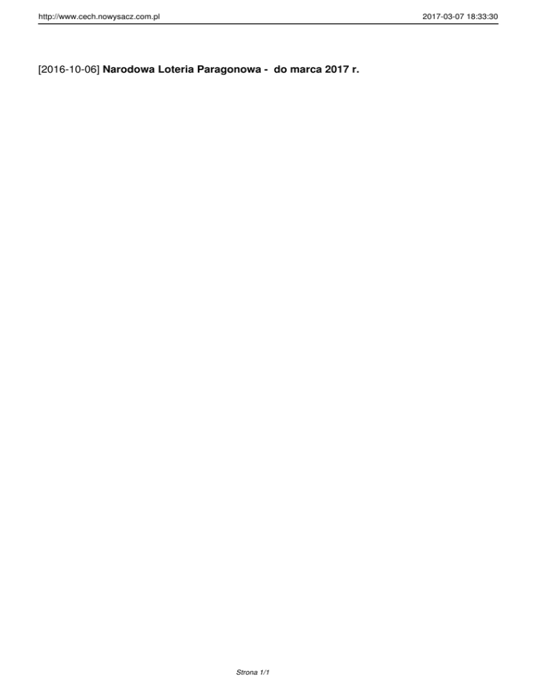 http://www.cech.nowysacz.com.pl 2017-03-07 18:33:30 [2016-10-06] Narodowa Loteria Paragonowa - do marca 2017 r. Strona 1/1