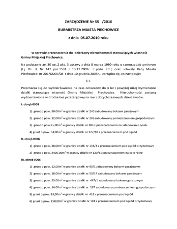 ZARZĄDZENIE Nr 55 /2010 BURMISTRZA MIASTA PIECHOWICE z
