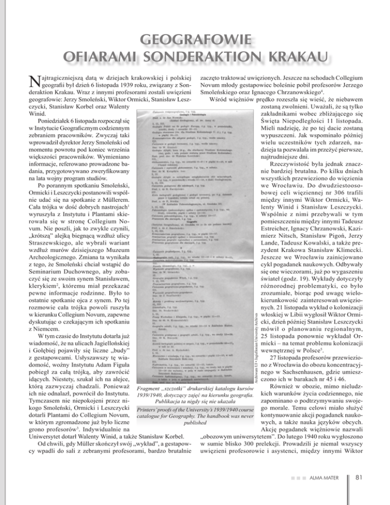 GEOGRAFOWIE OFIARAMI SONDERAKTION KRAKAU