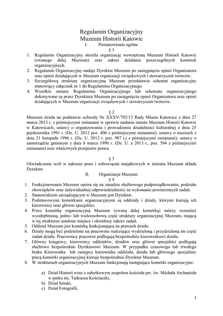 Regulamin Organizacyjny - BIP Muzeum Historii Katowic