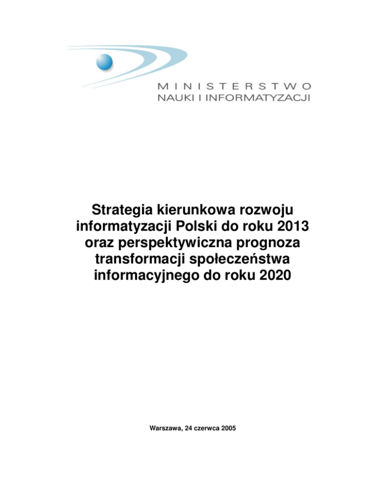 Niniejszy dokument „Strategia kierunkowa rozwoju informatyzacji Polski w latach 2007 –