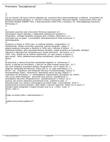 Już we wtorek (18 marca 2014) odbędzie się premiera filmu dokumentalnego o Stefanie Arczyńskim pt.