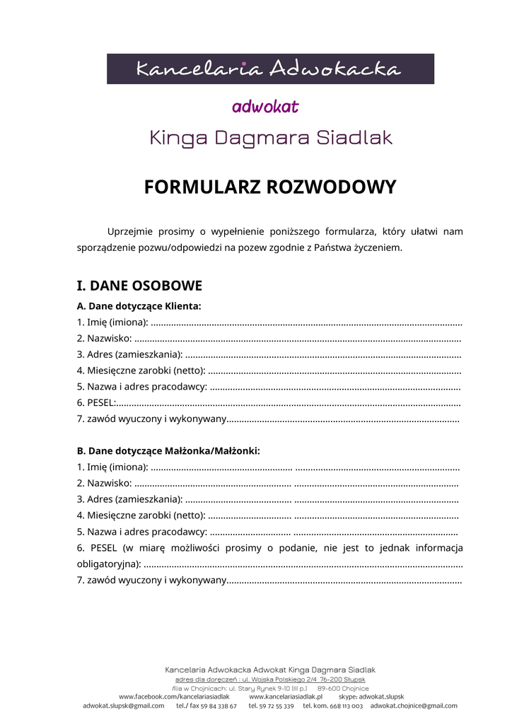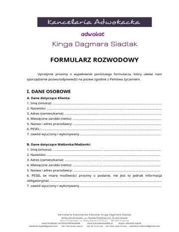 formularz rozwodowy - Kancelaria Adwokacka Kinga Dagmara