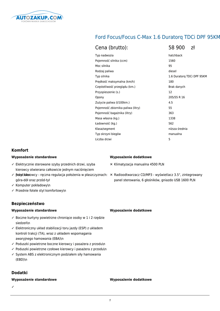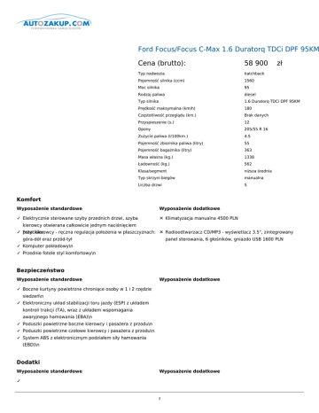 Ford Focus/Focus C-Max 1.6 Duratorq TDCi DPF 95KM Ambiente s