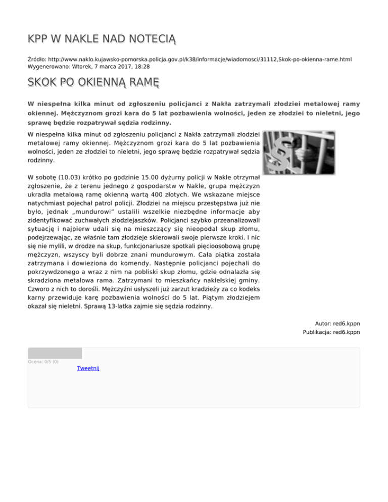 KPP W NAKLE NAD NOTECIĄ SKOK PO OKIENNĄ RAMĘ