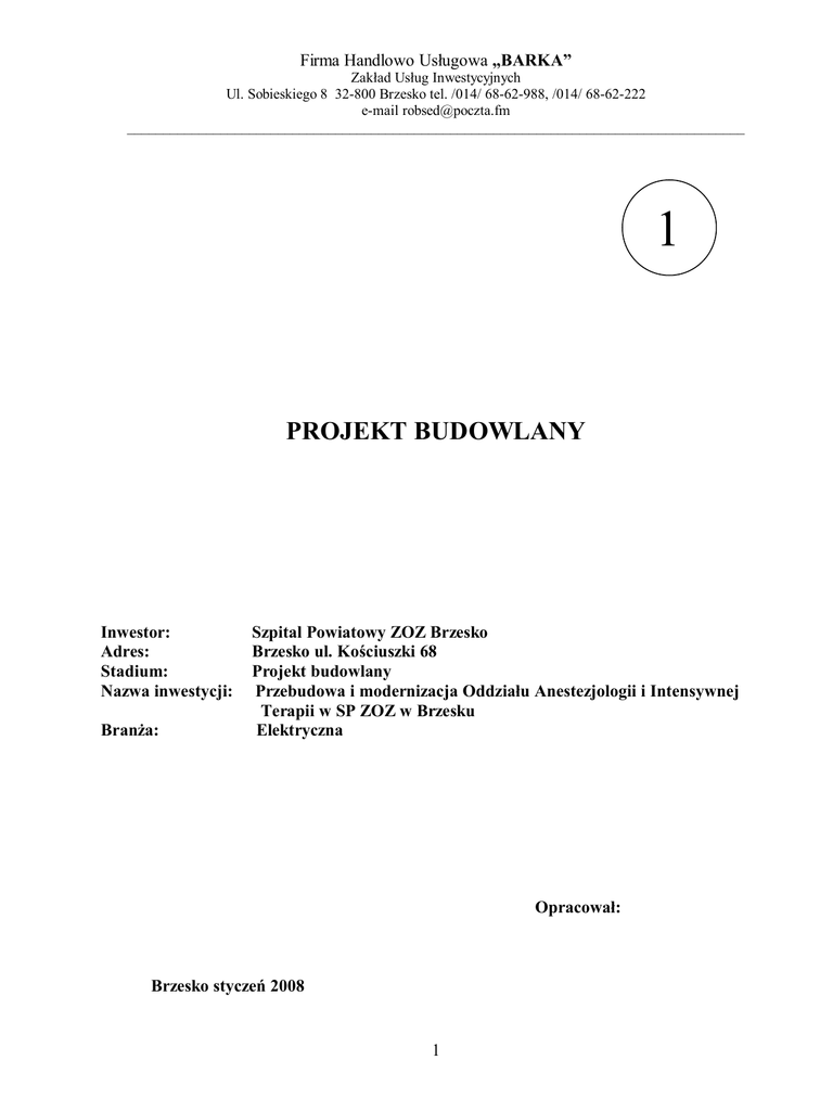 Firma Handlowo Usługowa „BARKA” Zakład Usług Inwestycyjnych Ul. Sobieskiego 8 32-800 Brzesko tel. /014/ 68-62-988, /014/ 68-62-222 e-mail [email protected] ______________________________________________________________________________________ 1 PROJEKT BUDOWLANY Inwestor: Adres: Stadium: Nazwa inwestycji: Branża: Szpital Powiatowy ZOZ Brzesko Brzesko ul. Kościuszki 68 Projekt budowlany Przebudowa i modernizacja Oddziału Anestezjologii i Intensywnej Terapii w SP ZOZ w Brzesku Elektryczna Opracował: Brzesko styczeń 2008 1 Firma Handlowo Usługowa „BARKA” Zakład Usług Inwestycyjnych Ul. Sobieskiego 8 32-800 Brzesko tel. /014/ 68-62-988, /014/ 68-62-222 e – mail [email protected] ______________________________________________________________________________________ SPIS OPRACOWANIA 1. Opis techniczny 1.1. Opis stanu istniejącego 1.2. Zasilanie i rozdzielnia 1.3. Instalacja światła 1.3.1. Oświetlenie podstawowe 1.3.2. Oświetlenie gwarantowane 1.3.3. Oświetlenie awaryjne 1.4. Instalacja gniazd wtykowych 230V 1.4.1. Instalacja gniazd wtykowych 230V zasilanie podstawowe 1.4.2. Instalacja gniazd wtykowych 230V zasilanie gwarantowane 1.5. Instalacja telefoniczna 1.6. Ochrona przeciwporażeniowa 1.7. Instalacja do monitorowania zdrowia pacjenta 1.8. Uwagi 1.9. Obliczenia prądu, spadków napięć i przekroju przewodów 1.10. Zestawienie materiałów rozdzielni RIT 1.11. Odpis uprawnień 1.12. Odpis przynależności do izby str. 3 str. 3 str. 3 str. 4 str. 4 str. 4 str. 4 str. 4 str. 5 str. 5 str. 5 str. 5 str. 6 str. 6 str. 7 str. 9 str.10 str.11 2. Rysunki 2.1. Instalacja oświetlenia podstawowego 2.2. Zasilanie gwarantowane 2.3. Rozdzielnia RIT 2.4. Rozdzielnia RITSZR 2.5. Rozdzielnia RITŚN 2.6. Rozdzielnia RITGN 2.7. Rozdzielnia RITŚG 2.8. Rozdzielnia RITGG 2.9. Elewacja rozdzielni RIT rys. E 201 rys. E 202 rys. E 203 rys. E 204 rys. E 205 rys. E 206 rys. E 207 rys. E 208 rys. E 209 2 Firma Handlowo Usługowa „BARKA” Zakład Usług Inwestycyjnych Ul. Sobieskiego 8 32-800 Brzesko tel. /014/ 68-62-988, /014/ 68-62-222 e – mail [email protected] ______________________________________________________________________________________ 1. OPIS TECHNICZNY 1.1. Opis stanu istniejącego Chirurgia piątego piętra Szpitala Powiatowego zasilana jest z rozdzielni głównej zlokalizowanej we wnęce w sąsiedztwie windy. Rozdzielnia ta zasilana jest zasilaniem podstawowym z sieci energetycznej, oraz zasilaniem rezerwowym z agregatu prądotwórczego. Modernizacja tych zasilań nie jest przedmiotem niniejszego opracowania. Jednak po dokonaniu wizji lokalnej stwierdzono konieczność jej przeliczenia i modernizacji. 1.2. Zasilanie i rozdzielnia Przewiduje się zainstalowanie nowej rozdzielni w pomieszczeniu nr 16 jako rozdzielnia przyścienna typu XL3400 /RIT/ metalową o wymiarach 1500*575*208 z 24 modułami w rzędzie, z drzwiczkami profilowanymi transparętnymi z zamkiem. Zasilanie tej rozdzielni odbywać się będzie z rozdzielni głównej przy windzie dwutorowo: 1. zasilanie z sieci energetycznej kablem YKY 4*25 mm2 w korytku nad sufitem podwieszanym korytarza. 2. zasilanie z agregaty prądotwórczego kablem YKY 4*16 mm2 w korytku nad sufitem podwieszanym korytarza. Do rozdzielni projektowanej należy doprowadzić uziemienie z windy przewodem LY 25 mm2 do listwy PEN rozdzielni RIT. Od tej listwy dalej przewód PEN należy rozdzielić na PE i N. W skład tej rozdzielni wchodzić będą dodatkowo dwie sztuki UPS-ów, 3*400/230V każdy po 8kVA z kompletem baterii 2*32. Każda bateria 9Ah. Wysokość UPS-a wraz dwoma kompletami baterii wynosi ca1214 mm przy szerokości 702 mm. Wraz z UPS-sem należy zamówić przełącznik obejściowy. Lokalizacja UPS-ów znajdować się będzie z wydzielonej części maszynowni windy. W pomieszczeniu tym należy umiejscowić dwa transformatory separacyjne jednofazowe typu ES710 8 kVA. Ze względu na wymogi pracy UPSów które pracują prawidłowo w zakresie temperatury +15 do +250C należy zainstalować w tym pomieszczeniu jednofazowe urządzenie klimatyzacyjne /opracowanie w dokumentacji instalacji wentylacji i klimatyzacji/. Rozdzielnia RIT składa się z: 1. Rozdzielni podstawowej RIT wg rysunku E203. 2. Samoczynnego Załączenia Rezerwy RITSZR rysunek E204 3. Rozdzielni światła nie gwarantowanego RITŚN rysunek E 205 4. Rozdzielni gniazd 230V nie gwarantowanych RITGN rysunek E 206 5. Rozdzielni światła gwarantowanego RITŚG rysunek E 207 6. Rozdzielni gniazd gwarantowanych RITGG szt 2 wg rysunku E 208 3 Firma Handlowo Usługowa „BARKA” Zakład Usług Inwestycyjnych Ul. Sobieskiego 8 32-800 Brzesko tel. /014/ 68-62-988, /014/ 68-62-222 e – mail [email protected] ______________________________________________________________________________________ 1.3. Instalacja światła Przewiduje się trzy rodzaje oświetlenia: 1. oświetlenie podstawowe 2. oświetlenie gwarantowane 3. oświetlenie awaryjne 1.3.1. Oświetlenie podstawowe Oświetlenie podstawowe należy zasilić z rozdzielni RIT z części RITŚN. Jest to oświetlenie zasilane z sieci energetycznej. Instalację tego oświetlenia należy wykonać przewodami YDYp w tynku a na korytarzu w korytkach. W pomieszczeniach suchych z osprzętem pod tynkowym, natomiast w części mokrej jak łazienki toalety z osprzętem hermetycznym w tynku. Ilość opraw ustalono o program DIALux 4.4 z zastosowaniem normatywnego oświetlenia na podstawie PN-68/E-02033 oraz opraw PHILIPS. W przypadku zaprzestania produkcji którejkolwiek z opraw lub nadmiernego oczekiwania należy zastosować oprawy o podobnych charakterystykach firmy PHILIPS z zastosowaniem odpowiedniej ilości lm i barwy swiatła. 1.3.2. Oświetlenie gwarantowane Oświetlenie gwarantowane przewidziano do oświetlenia nocnego w panelu łóżkowym oraz do części opraw z modułem awaryjnym w sali nadzoru i izolatce. Zasilanie tych obwodów odbywać się będzie z SZR-u. Do panelu łóżkowego, oświetlenia nocnego, należy doprowadzić in