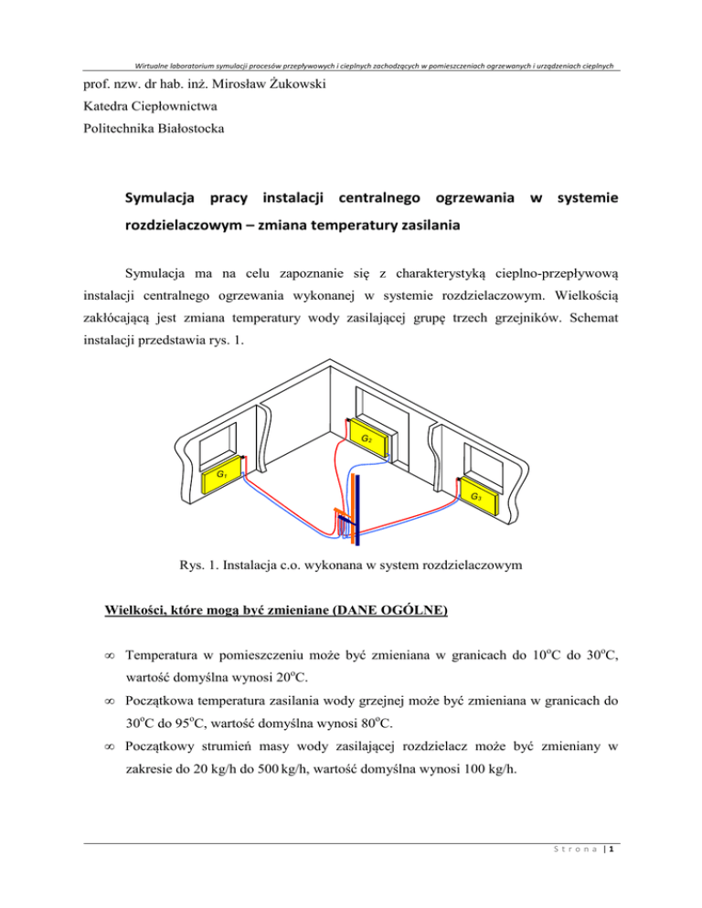zmiana temperatury zasilania.