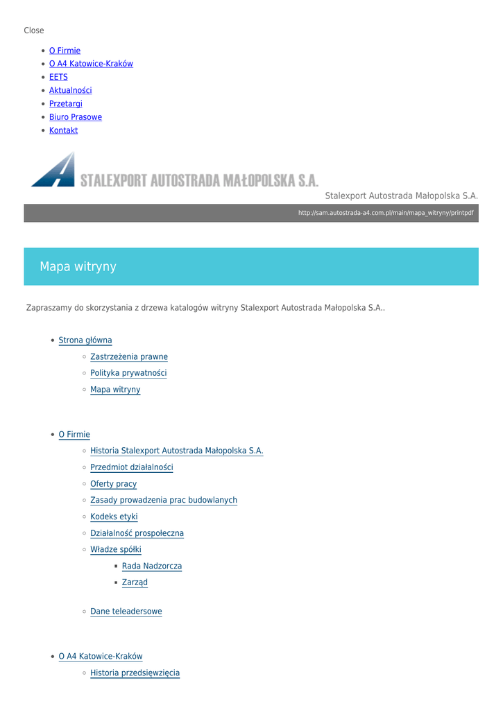 Mapa witryny - Stalexport Autostrada Małopolska S.A.