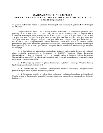 ZARZĄDZENIE Nr 520/2015 PREZYDENTA MIASTA TOMASZOWA