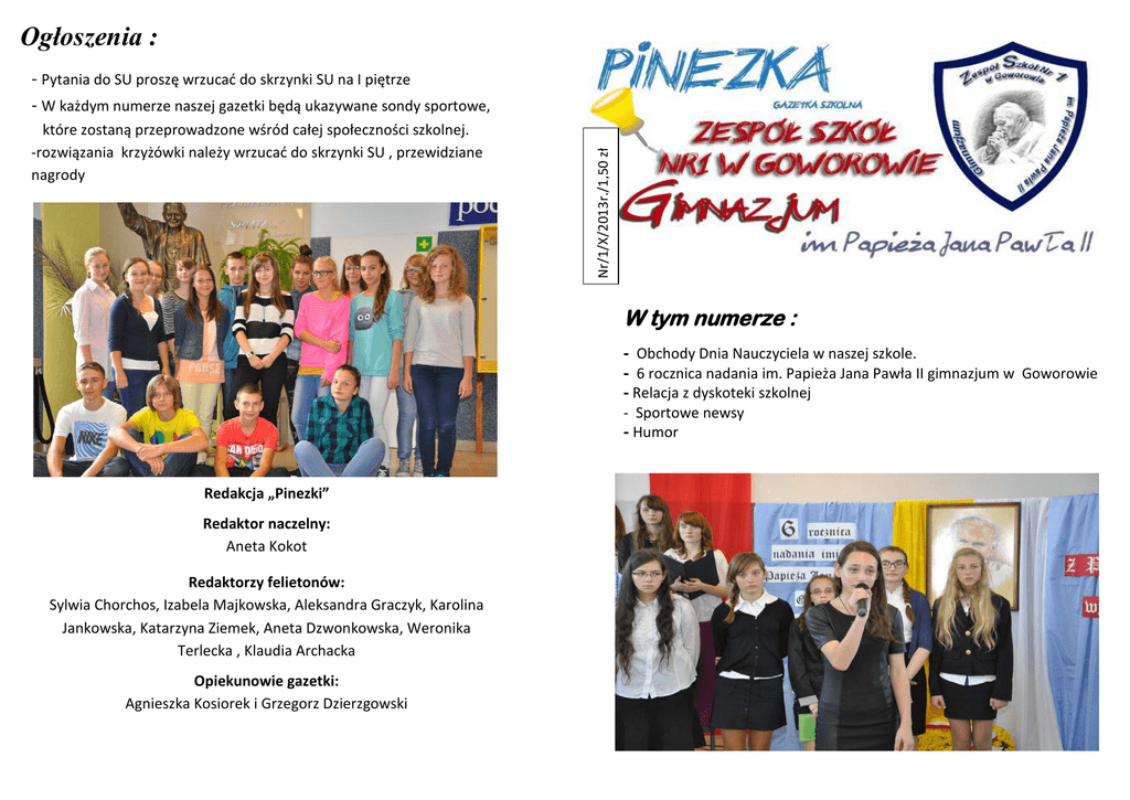 Ogłoszenia : - Zespół Szkół Nr1 w Goworowie