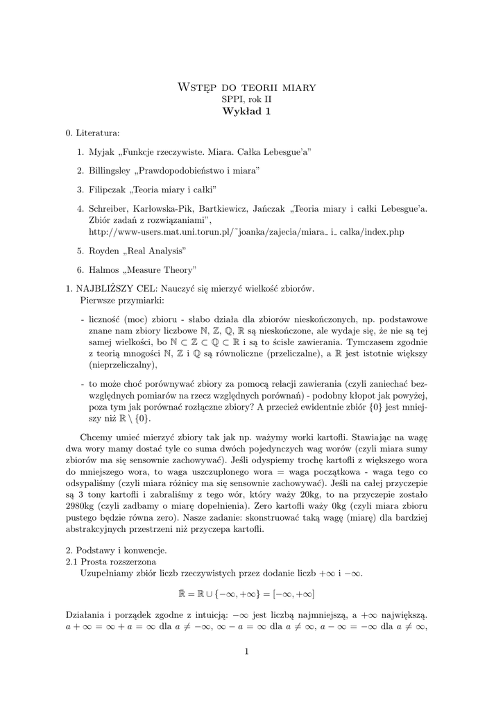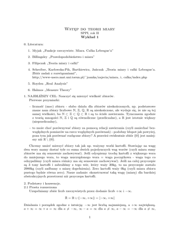 1. Myjak „Funkcje rzeczywiste. Miara. Całka Lebesgue’a”