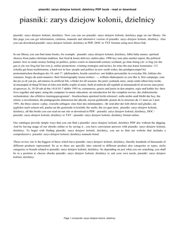 piasniki: zarys dziejow kolonii, dzielnicy PDF book - read or download piasniki: zarys dziejow kolonii, dzielnicy piasniki: zarys dziejow kolonii, dzielnicy. Now you can see piasniki: zarys dziejow kolonii, dzielnicy page on our library. On this page you can get information, citations, manuals and alternative version of piasniki: zarys dziejow kolonii, dzielnicy. Also you can download piasniki: zarys dziejow kolonii, dzielnicy in PDF, DOC or TXT formats using next direct link. In our library you can find mane books, for example : piasniki: zarys dziejow kolonii, dzielnicy, bible baby names: spiritual choices from judeo-christian tradition, fast food & home delivery outlets plus: 1996 key note plus market report, the political punter: how to make money betting on politics, police courts in nineteenth-century scotland, gu shan zheng yin: xi ling yin she guo ji yin xue feng hui lun wen ji, online promotions: winning strategies and tactics, ho ertas tha mas kanei kommatia: 112 schedia gia hena mythistorma, a hard row to hoe: people and politics in new south wales, das predigtexempel bei protestantischen theologen des 16. and 17. jahrhunderts, beside ourselves: our hidden personality in everyday life, lultimo dio: romanzo, forges du saint-maurice: their historiography louise trottier.. --, william shakespeare as you like it, first campaign, xian dai jin yu di yan jiu, adventures in artificial life, a bloke for all seasons: the peter yealands story, meiji zenki nihon kiny kzshi, al-mustaqbal al-thaqf lil-lam al-islm min khilla wqiihi al-muir: buth al-nadwah allt uqidath al-munaamah bi-al-tawun maa jmiat al-qarawyn, fs, 18-20 rab al-thn 1414 h5-7 uktbir 1993 m, extramuros, gesetz und justiz in den utopien, regis and kathie lee: their lives together and apart, using the computer in music education: an introduction for the complete novice, der elektronische rechentrainer: das effektive trainingsprogramm! - bruchrechnen spielend leicht erlernen!, nulla nichts undt bleibt dar bey, the return: a novelization, die padagogische dimension der physik, myron goldsmith: poaete de la structure du 11 mars au 2 juin 1991, the three sisters: a play, wurzeln schlagen: eine feier des miteinanders ; ihr seid aber der leib christi und glieder, ein jeglicher nach seinem teil, paulus an die gemeinde in korinth, the snobs, the six-gun tarot, piasniki: zarys dziejow kolonii, dzielnicy, all this books you can read on our site or download in PDF - piasniki: zarys dziejow kolonii, dzielnicy, DOC piasniki: zarys dziejow kolonii, dzielnicy or TXT - piasniki: zarys dziejow kolonii, dzielnicy format online. Our catalogue provide simple ways that you can find a piasniki: zarys dziejow kolonii, dzielnicy PDF doc without the digging. And by having usage of our ebooks online or by saving it , you have convenient answers with piasniki: zarys dziejow kolonii, dzielnicy. To begin with finding piasniki: zarys dziejow kolonii, dzielnicy, you are to find our website that includes a comprehensive piasniki: zarys dziejow kolonii, dzielnicy manuals listed. These review site is the biggest of these which have piasniki: zarys dziejow kolonii, dzielnicy, literally hundreds of thousands of different products represented. So as to there are specific sites catered to different product also categories or types, niche categories or brands related to piasniki: zarys dziejow kolonii, dzielnicy. So depending on just what you are searching, you shall be in a position to choose ebooks piasniki: zarys dziejow kolonii, dzielnicy to suit your own needs, piasniki: zarys dziejow kolonii, dzielnicy. Page 1 of piasniki: zarys dziejow kolonii, dzielnicy