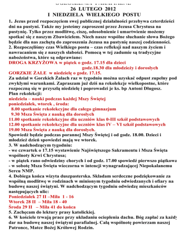 OGŁOSZENIA PARAFIALNE 26 LUTEGO 2012 I NIEDZIELA