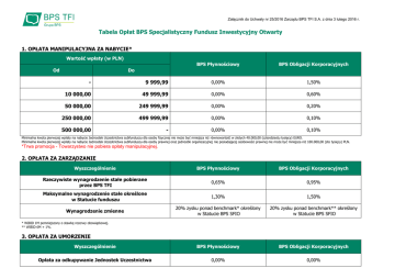Tabela Opłat BPS Specjalistyczny Fundusz Inwestycyjny