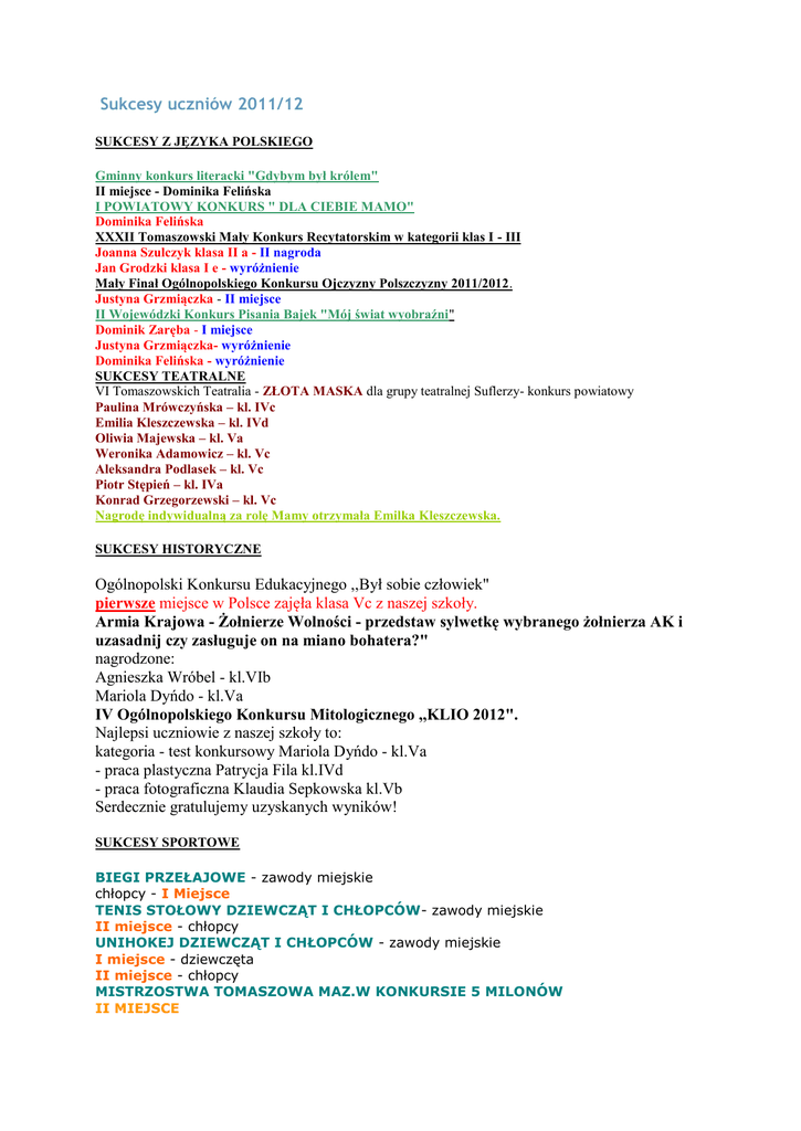 Sukcesy uczniów 2011 2012